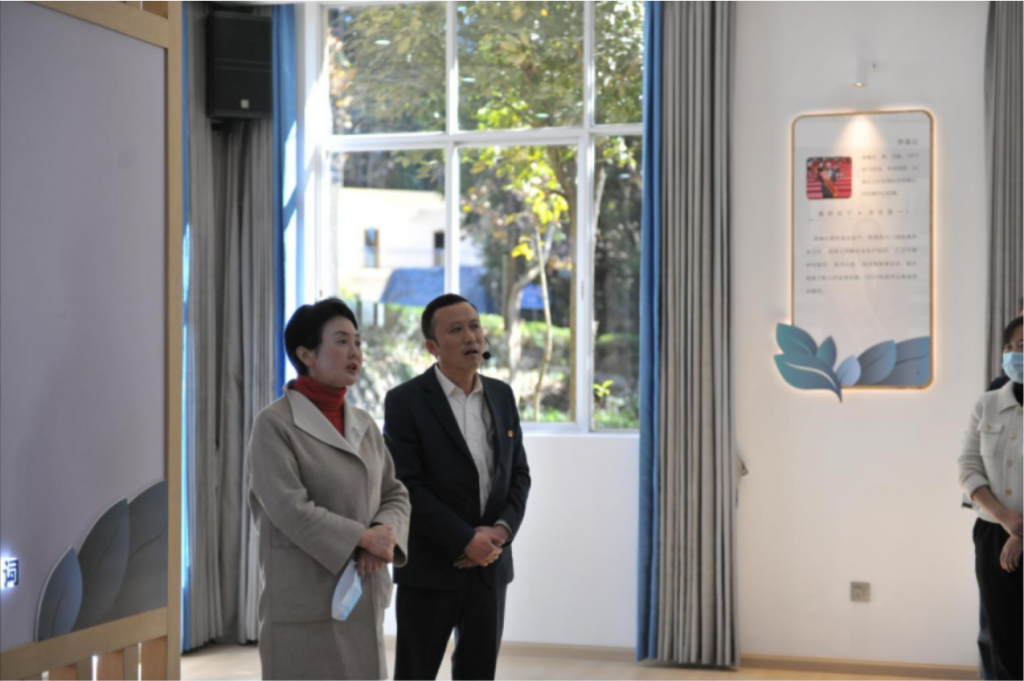 在工会联合会主席李国良的引导下参观了云之叶职工之家阵地,参观过程中,李国良主席围绕“精神铸魂-育四有职工”、“明主管理-职工做企业的主人”、“建章立制-制度先行”、“多彩活动-凝心聚力”、“素质提升-逐梦前行”、“我与企业-共成长”、“产业工人-改革目标”七方面,向莅临的各位领导详细的介绍了云之叶公司这5年来新时期产业工人队伍建设改革工作的具体实施情况。